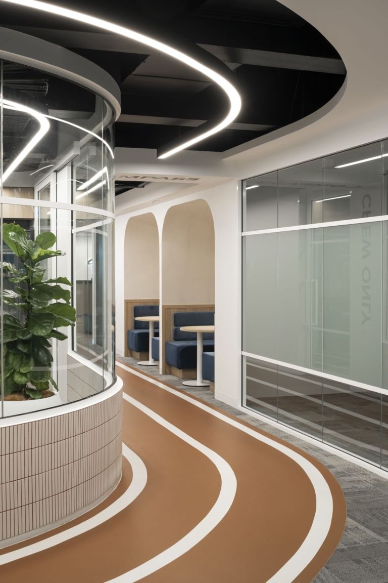 • Cielos Rasos Dinámicos: Cambios de altura en el techo (falsos techos) que «comprimen» el espacio en pasillos y lo «expanden» en puntos de encuentro, indicando llegada.