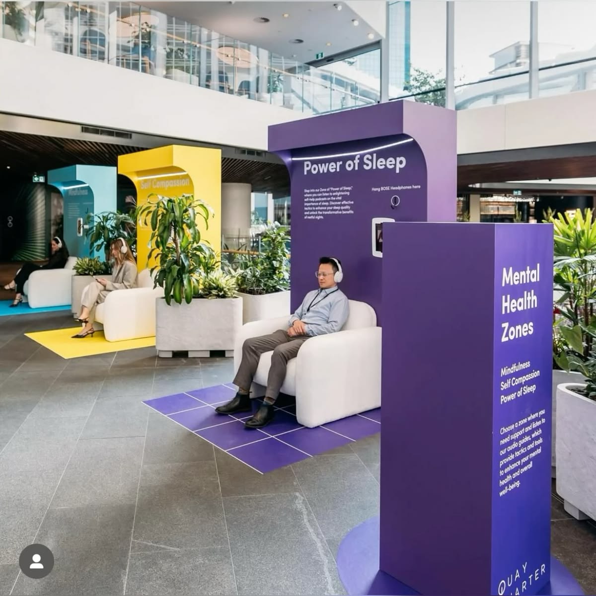 3. Zonificación Cromática: Aplicación de contrastes de color en el piso para definir áreas de espera sin necesidad de mobiliario divisorio.